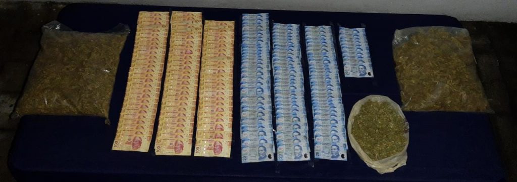 Al arribo de las fuerzas del orden se les realizó una inspección de rutina, hallándoles tres bolsas de plástico en cuyo interior contenía material vegetal, con similitud a la mariguana, así como también 10 mil pesos en efectivo, situación por la cual se procedió a asegurarlos.