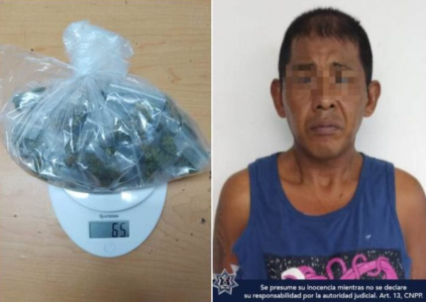 Al realizar una inspección de seguridad a quien se identificó como Edgar “N” de 43 años edad, los policías encontraron entre sus pertenencias 48 bolsas con vegetal verde de las características de la marihuana, por lo que fue asegurado para ser puesto a disposición de la Fiscalía General del Estado para los fines legales correspondientes.