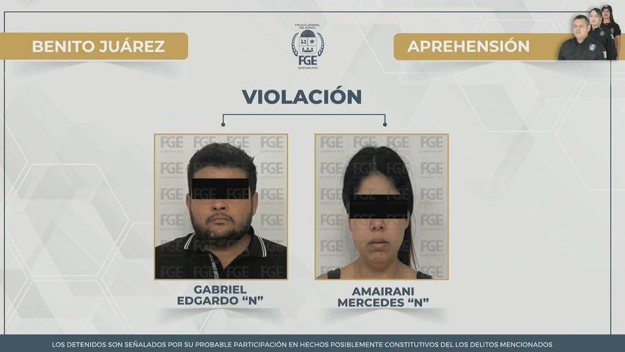 PODER Y CRÍTICA | REDACCIÓN | Una pareja fue detenida en el municipio de Benito Juárez, acusada de presunto abuso sexual en agravio de su hijo de cuatro años, informaron autoridades de la Fiscalía General del Estado de Quintana Roo.