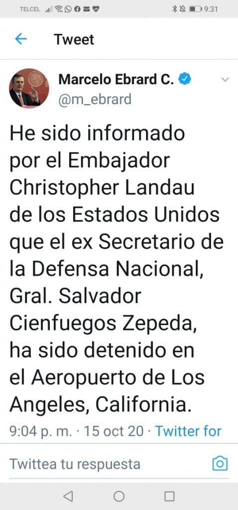 El secretario de Relaciones Exteriores, Marcelo Ebrard, confirmó la detención a través de un mensaje en Twitter.