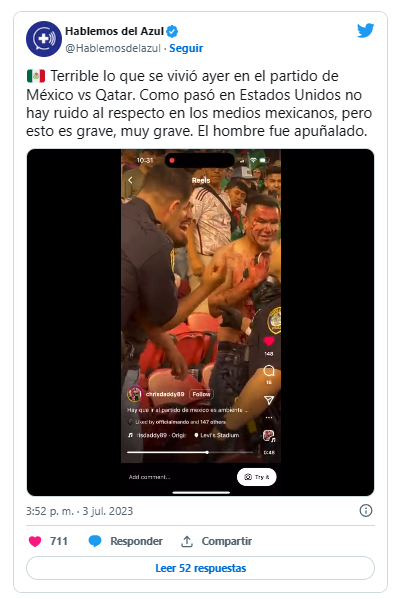 Poder y Crítica | Redacción | Hace unos días, la afición mexicana de fútbol se volvió protagonista en múltiples países, después de que se viralizara una agresión donde, un hombre -ahora identificado como Emmanuel Díaz Leal- fue apuñalado muy cerca del corazón con un objeto punzocortante, en el duelo de México vs Qatar que se llevó a cabo en el Levi’s Stadium de Santa Clara, como parte de la agenda de la Copa Oro.