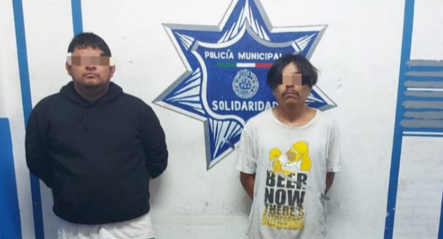 PODER Y CRÍTICA | Policías de la Secretaría de Seguridad Pública y Tránsito Municipal de Solidaridad detuvieron a dos personas en posesión de más de 2 kilos de posible marihuana, 1 bolsa de polvo blanco y 1 bolsa con una sustancia amarilla, en el fraccionamiento Villas del Sol de Playa del Carmen.