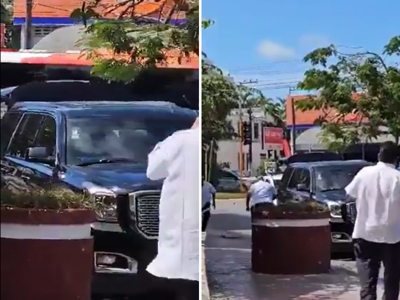 A través de redes sociales se viralizó un video en el que se ve que un grupo de taxistas que atacaron con piedras y palos una camioneta tipo Suburnan que llevaba a bordo a turistas sobre la avenida Yaxchilán.