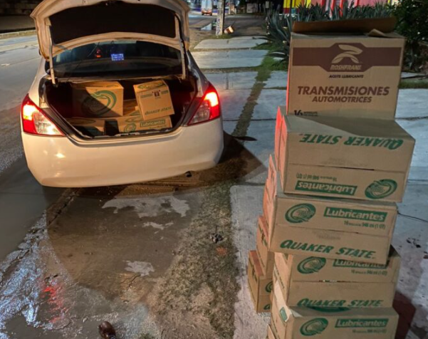 Playa del Carmen, Q. Roo, Sábado 20 de Noviembre del 2021, Poder y Crítica | Esta mañana fueron detenidos Adán “N”, de 34 años de edad, originario de Guerrero y Julio “N” de 45, proveniente de Yucatán, después de que policías municipales detectaran al primer sujeto subiendo cajas de cartón con aceites de la marca Quaker State en la cajuela del taxi 787 del sindicato “Lázaro Cárdenas del Río”, con el segundo individuo al volante.