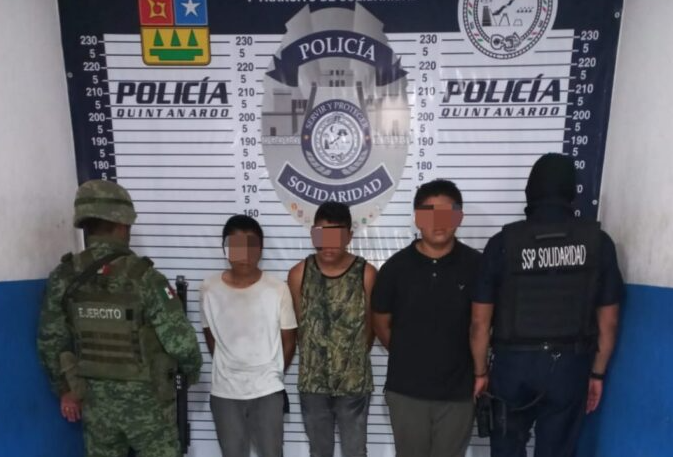 PODER Y CRÍTICA | REDACCIÓN | Durante el operativo conjunto Kitán II, policías de la Secretaría de Seguridad Pública y Tránsito Municipal de Solidaridad aseguraron a tres sujetos, de los cuales dos son menores de edad, en posesión de más de 250 bolsas con posibles narcóticos y dos cartuchos, en la colonia Colosio de Playa del Carmen.