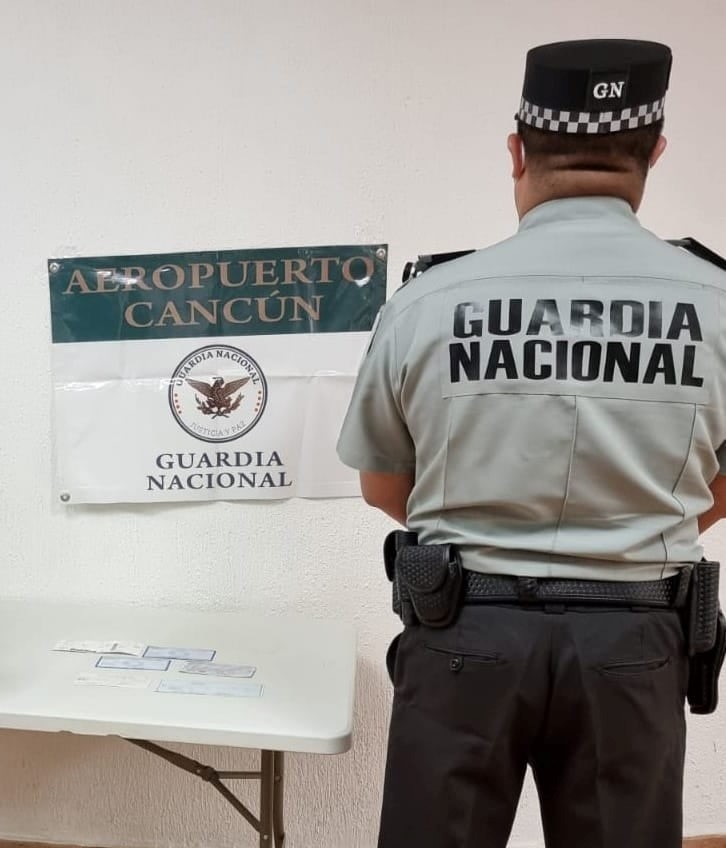Cancún, Q. Roo, Lunes 27 de Septiembre de 2021, poderycrítica.- Un turista de nacionalidad brasileña que llegó a Cancún procedente de Los Ángeles, California, fue asegurado por elementos de la Guardia Nacional (GN) en el Aeropuerto Internacional, en posesión de cheques y dinero por 65 mil dólares, que no declaró ante las autoridades migratorias.