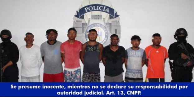En una tarjeta informativa, la Policía Quintana Roo dio a conocer la detención de Rigoberto “N”, Rafael “N”, Rubén “N”, Abisai “N”, Gustavo “N”, Eddy “N” y Joel “N”, por su probable participación en delitos contra la salud.