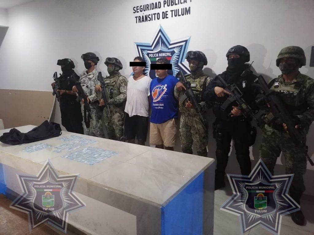 PODER Y CRÍTICA | REDACCIÓN | Cuatro personas fueron detenidas en la zona costera de Tulum con posesión de más de 200 dosis de sustancias ilícitas, resultado de dos operativos de inteligencia encabezados por la Seguridad Pública Municipal, Estado y Federación.