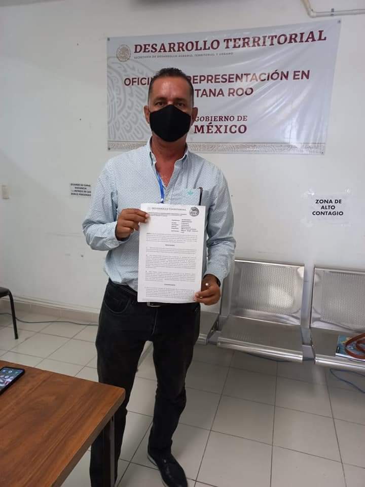 Este día, en Chetumal, el fundador y representante de esta zona, Miguel Ángel Ramírez Lara, recibió los documentos, por parte de de la oficina en Quintana Roo de Ordenamiento Territorial del Gobierno de México, lo que les permite seguir avanzando en la titulación de dichas tierras, todo dentro del marco legal de la Ley Agraria
