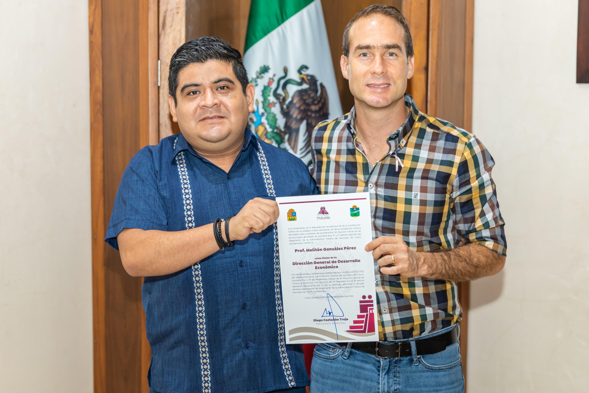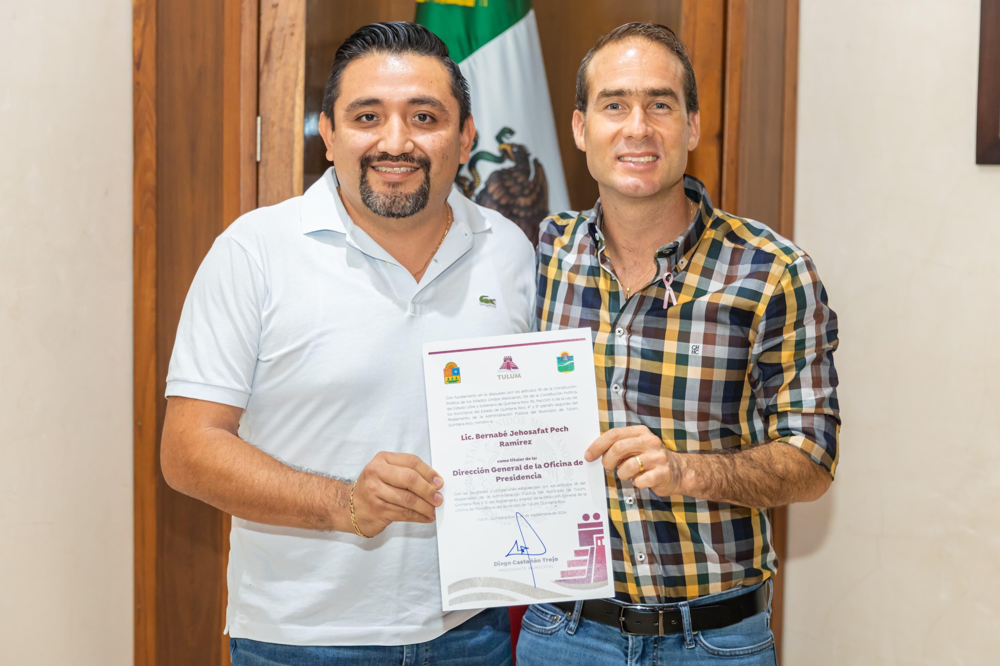 Diego Castañón Trejo presidente Municipal de Tulum entrega nombramientos a directores generales y directores de áreas