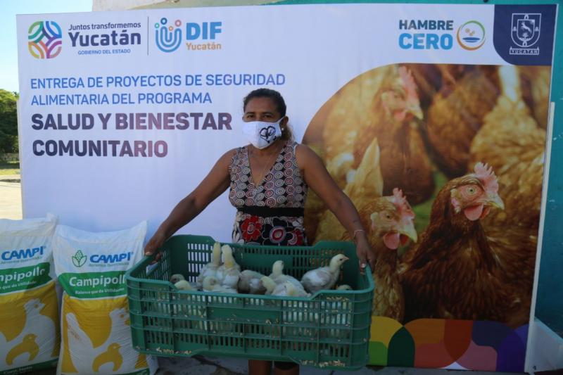 «Gracias a este programa, hemos aprendido a generar nuestra propia fuente de ingresos, ya que además de criar y crecer nuestras aves, las vendemos a gente de nuestra comunidad; también, hemos aprendido a elaborar postres caseros y, con su venta, ayudamos a nuestras familias», aseguró Norma Ku Ojeda, de Dzidzibachí, Halachó, donde las 12 integrantes del «Flor de mayo» recibieron 240 pollos con su comida.