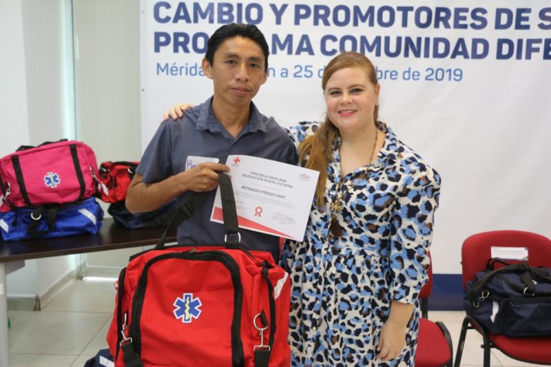 Recibieron sus equipos de primeros auxilios, los y los promotores de Halachó, Hunucmá, Kopomá, Umán, Seyé, Cuzamá, Tecoh, Tixkokob, Hocabá, Hoctún, Homún, Izamal, Yaxcabá, Buctzotz, Calotmul, Espita, Panabá, Tizimín, Sudzal, Tekantó, Temáx y Cuncunul.