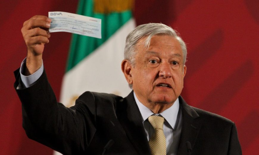 «Este dinero no solo proviene o lo que se está recuperando de la delincuencia común, viene también de la delincuencia de cuello blanco y es un procedimiento legal», apuntó con el cheque en la mano.