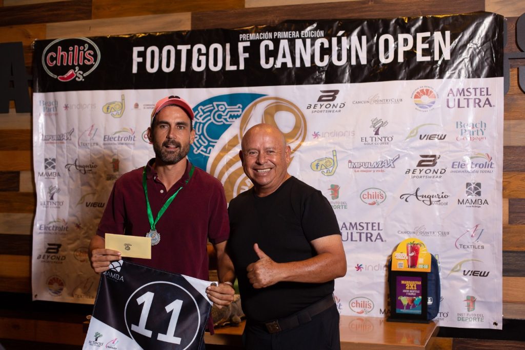 El pasado fin de semana FootGolf® Cancún vivió la primera edición de su abierto, un torneo de 3 días de actividades, iniciando con el día de práctica, el coctel de bienvenida en Bongo Bar donde se realizó la presentación del evento y el sorteo de salidas para el sábado, además de la fiesta en Congo Bar, para el sábado y domingo emplearse a fondo en El Tinto Golf Course y culminar con la cena de premiación en el restaurante Chilis Malecón, resultado un gran éxito el torneo que se caracterizó por ser el primer evento en ser equitativo en los premios en sus diferentes categorías, tanto Damas como Senior y Caballeros recibieron de manera igualitaria la repartición de la bolsa de premios que fue de más de 30 mil pesos.