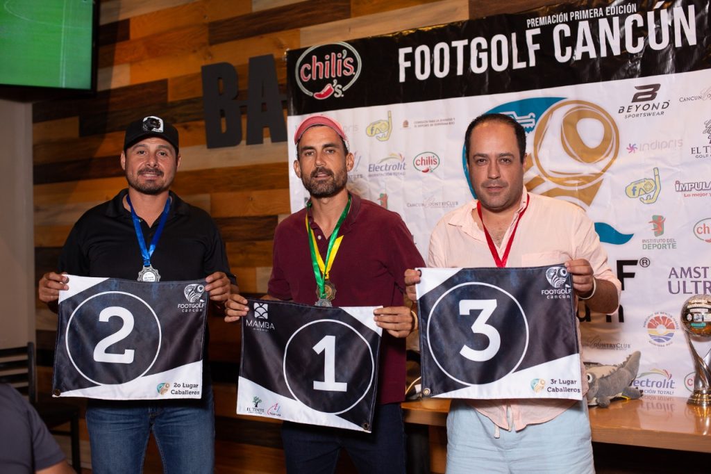 PODER Y CRÍTICA | REDACCIÓN | Con tremendo éxito se realizó la 1ª Edición del FootGolf® Cancún Open, con jugadores de Nuevo León, Jalisco, y Quintana Roo, el campo de Golf El Tinto en el Cancún Country Club, tuvo como campeones este domingo a Dinora Cruz en la categoría Damas, a Julio Flores en Senior y a Piero Menor en Caballeros.
