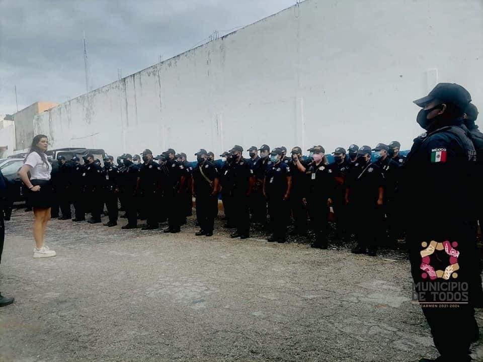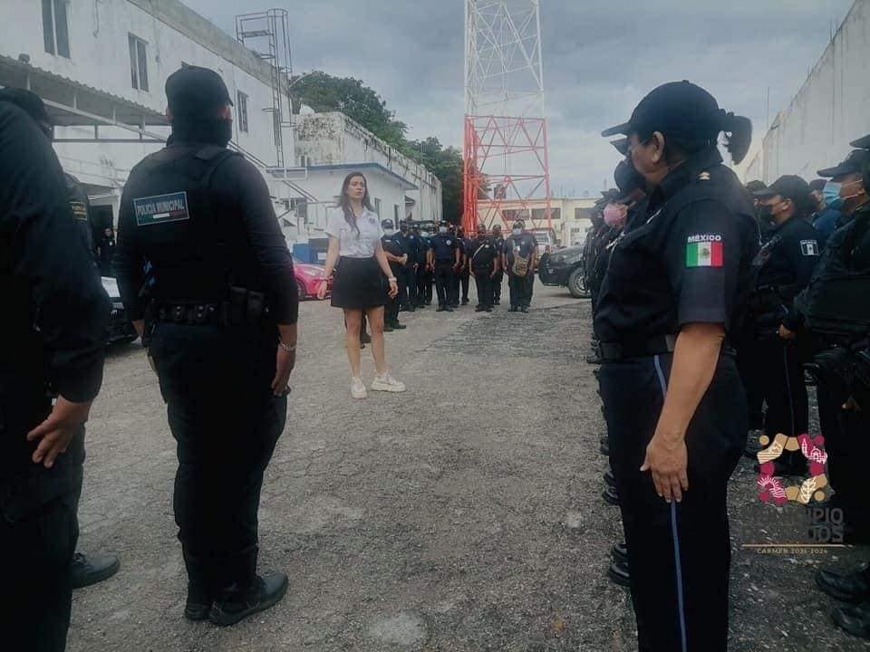 Ciudad del Carmen, Campeche, sábado 09 de Octubre de 2021, poderycrítica.- En tenis y falda, como muy pocas veces se ve a una agente policíaca, así realizó su pase de lista Samantha Bravo Muñoz; directora de la Policía Municipal de Ciudad del Carmen, en Campeche; para examinar el número de agentes policiacos, su instrucción, vestuario y armamento con el que cuentan.