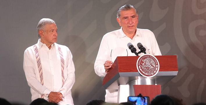 Adán Augusto López Hernández destacó que en Tabasco se trabaja de forma coordinada con las instituciones federales, con las secretarías de la Defensa Nacional (Sedena), de Marina (Semar), y ahora con la Guardia Nacional (GN), sobre todo en una estrategia conjunta para prevenir el delito y fungir como primer respondiente.