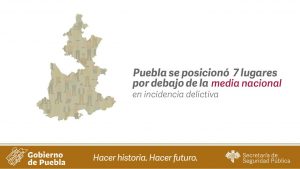 Destaca que Puebla fue ubicada siete posiciones por debajo de la media nacional en incidencia delictiva por cada 100 mil habitantes.