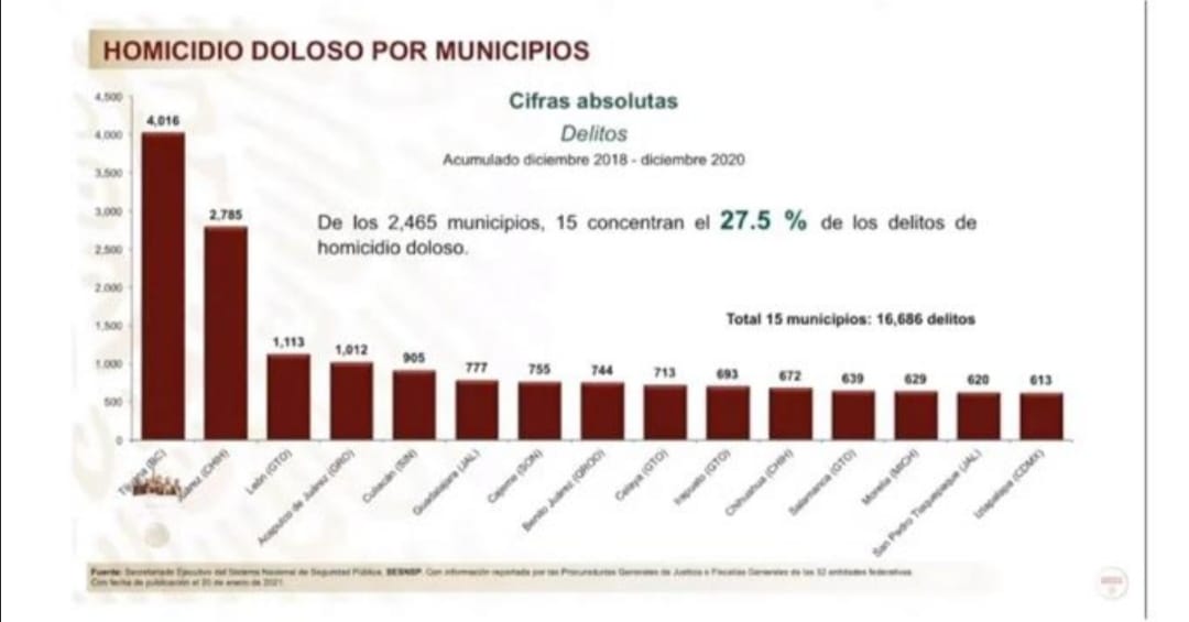 Durante un informe presentado en la conferencia mañanera, que encabeza el presidente Andrés Manuel López Obrador, el funcionario indicó que Cancún ocupó el octavo lugar entre 15 marcaciones que concentran el 27.5 por ciento de homicidio doloso, entre 2 mil 465 municipios del país.