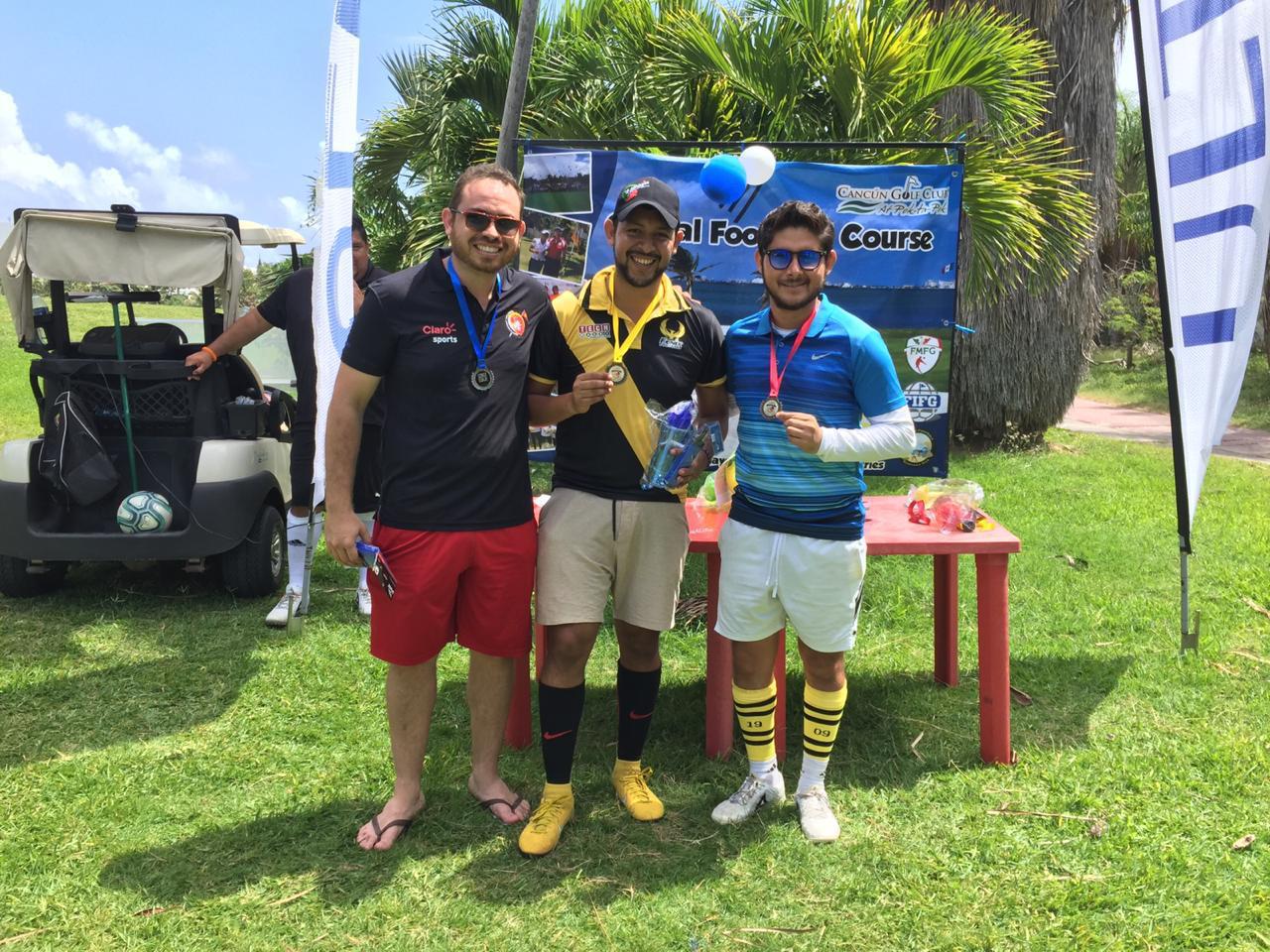 Fue una buena jornada para el Kukulkan Footgolf Club que logró adjudicarse tres preseas pero particularmente dos de ellas en la categoría absoluta. donde el primer lugar fue para Joshimar Mendoza quien terminó con 71 golpes, haciendo uno abajo del par. El segundo puesto fue para Diego Cacheux del equipo Hellfish Footgolf Club Cancún, finalizando par en el trazado de laguna del campo de Pok Ta Pok, mientras que el tercer puesto se lo llevó Mario Flores de Kukulkan, entregando una tarjeta de 74 golpes con dos arriba del par.