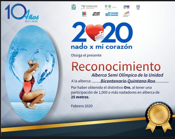 Cabe recordar que esta actividad se desarrolló a nivel nacional durante el periodo de 14 al 21 de febrero del 2020, en donde Quintana Roo se sumó con actividades en 3 albercas, con 5,400 participantes; realizando acciones para concientizar a la población en el cuidado de la salud de su corazón.