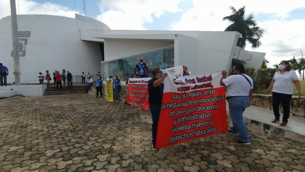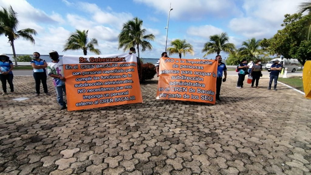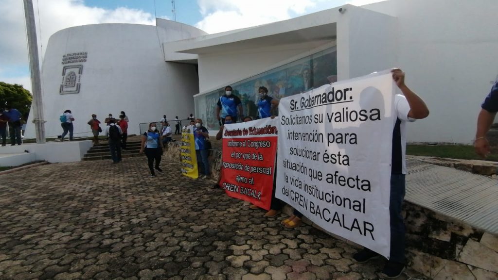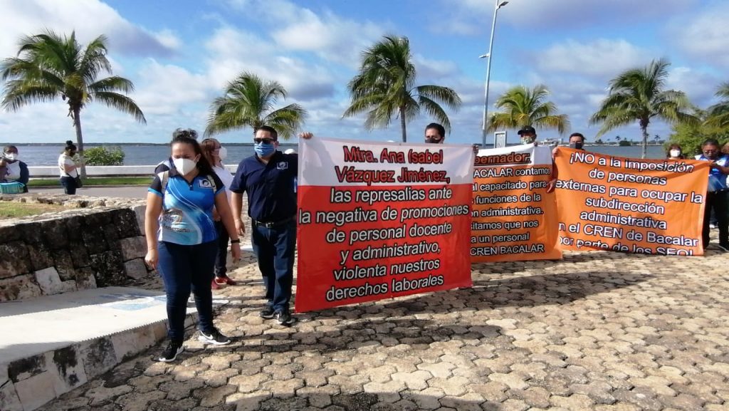 A esta manifestación se sumaron docentes de la Normal de Bacalar, quienes protestaron por la imposición de la titular de la Subdirección Administrativa.