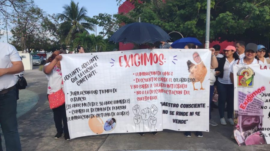 Los manifestantes partieron del Museo de la Cultura Maya hacia el Congreso del Estado. Durante el recorrido pudo observarse en pancartas y mantas la exigencia de la derogación de los apartados reformados. Recriminaron a los representantes populares federales, en especial a los de Quintana Roo, por contraponerse al bienestar ciudadano. En el trayecto invitaron a demás trabajadores a sumarse a la inconformidad.
