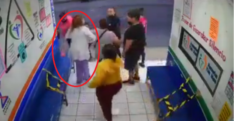 Después, se ve al hombre dirigirse hacia la doctora para golpearla, mientras tanto una de las mujeres intenta calmar a sus familiares, sin embargo no tiene éxito, e incluso se observa cómo otra de ellas intenta arrebatarle el celular a la doctora que grababa los hechos.