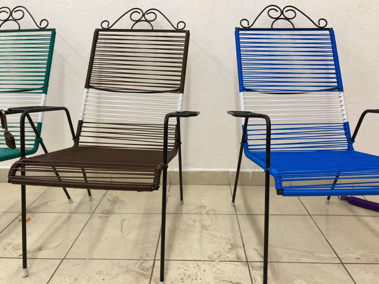 Tejer las sillas es un verdadero arte; puesto que para cubrir la estructura de hierro debe hacer nudos con hilo de plástico o también conocido como cordón de vinil; de tal forma que cubra perfectamente.