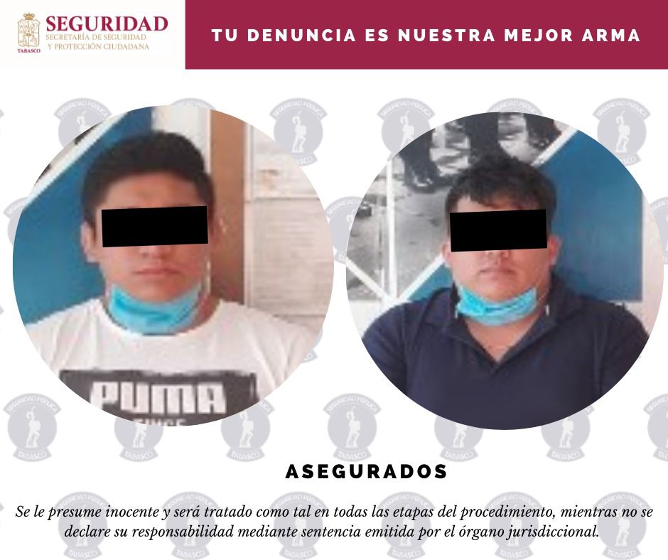 Tabasco, Miércoles 24 de Noviembre del 2021, Poder y Crítica | En el municipio de Centro, elementos de la Secretaría de Seguridad y Protección Ciudadana (SSPC) aseguraron a Erick Manuel “N” y Ángel de Jesús “N”.