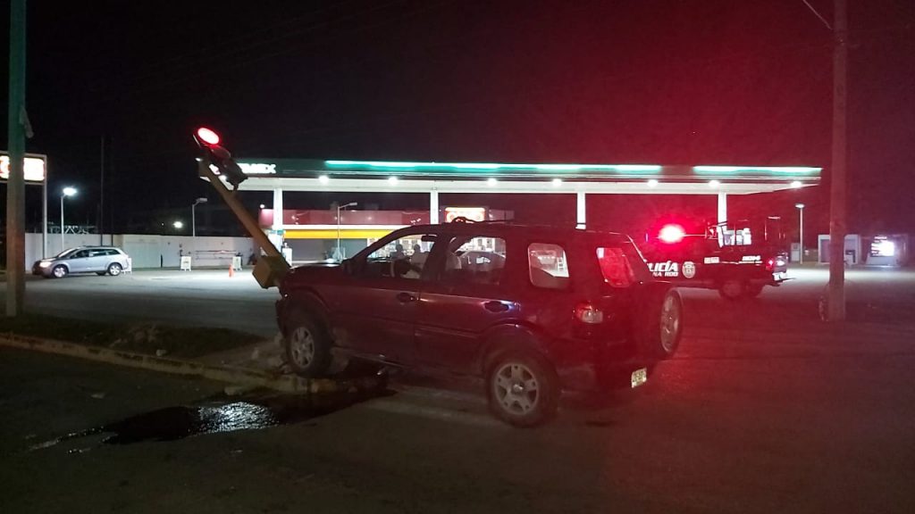 De acuerdo a testigos, el conductor del vehículo marca Ford, tipo Eco Sport, transitaba a exceso de velocidad, perdió el control y se impactó contra el poste del semáforo. Además se encontraba en estado de ebriedad.