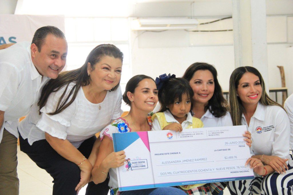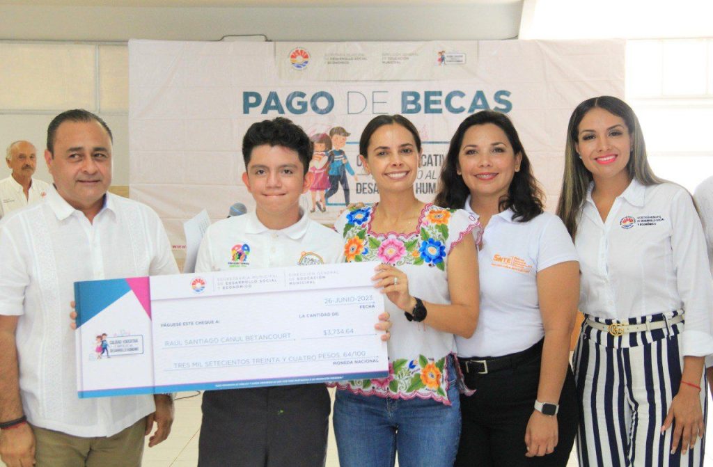 De igual manera, previo a la entrega de los cheques simbólicos para beneficiarios de cada uno de los diferentes niveles educativos atendidos correspondiente al apoyo de enero a junio, la Primera Autoridad Municipal destacó que hay que sumar esfuerzos, unirse y cada uno desde su trinchera contribuir para hacer un mejor Cancún.