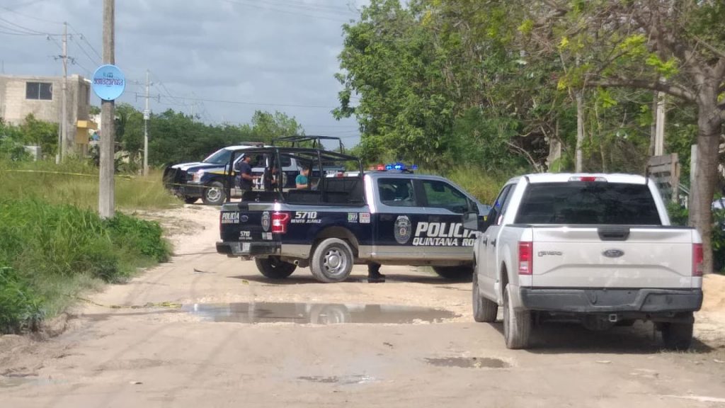 Al lugar arribaron elementos de la Policía Quintana Roo para acordonar el área con cinta amarilla para impedir el paso de curiosos a la zona donde fue encontrado el vehículo con el cadáver.