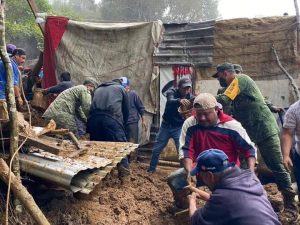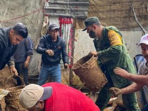 El personal militar continúa en el área afectada, realizando de manera ininterrumpida actividades de remoción de escombros, lodo y limpieza del área.