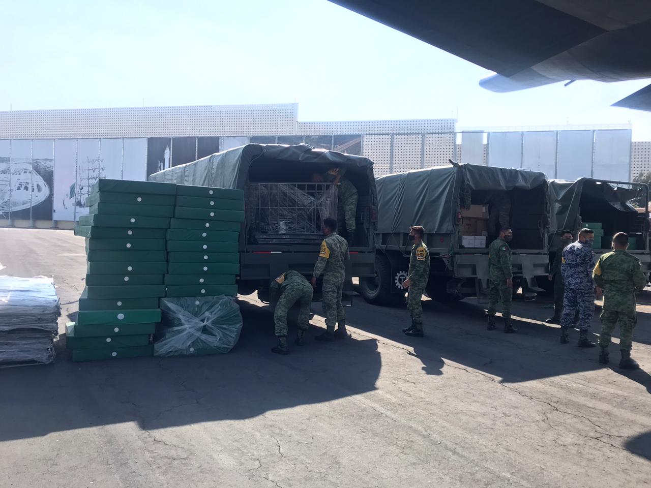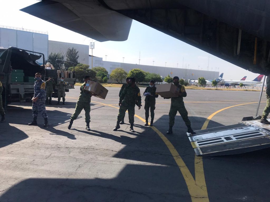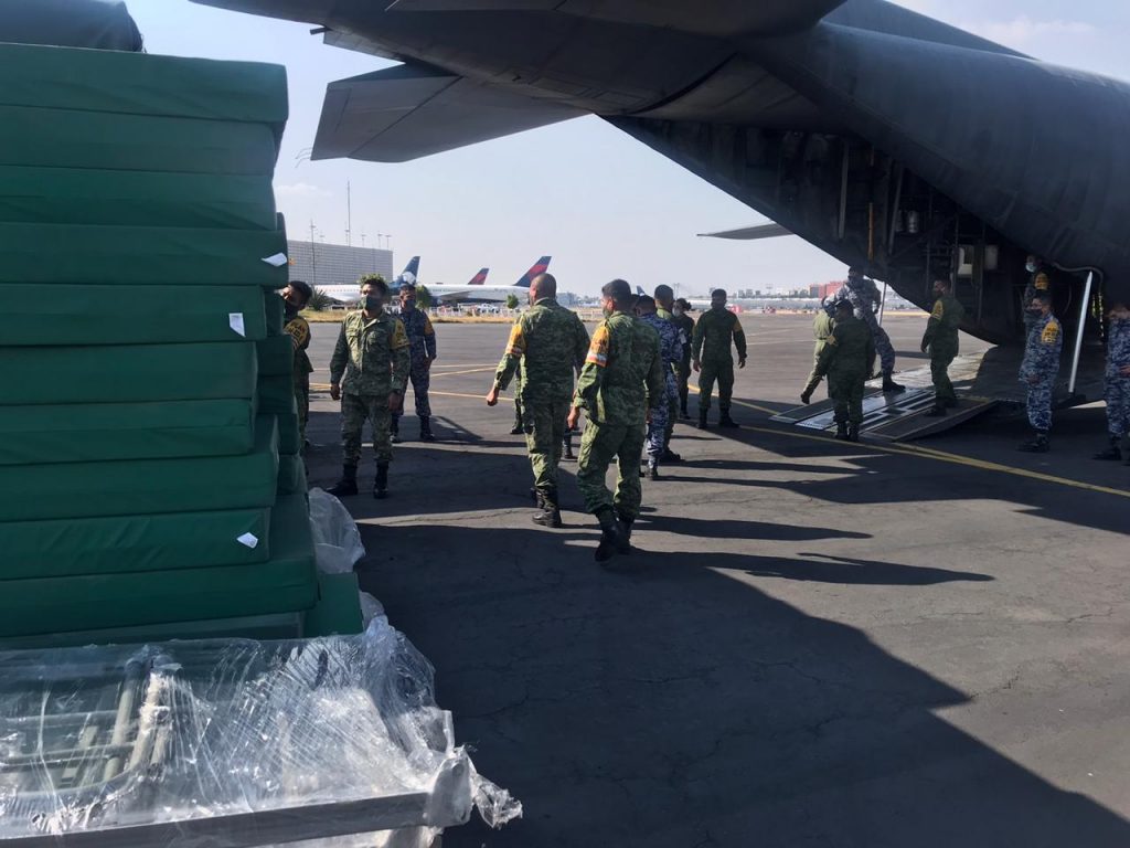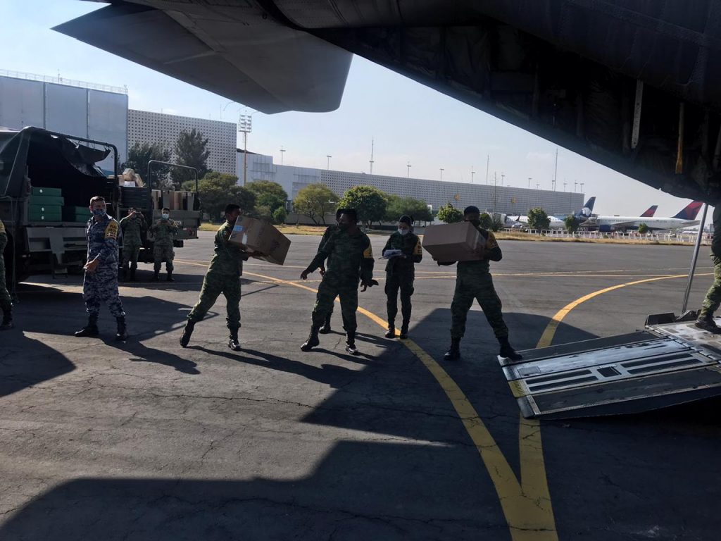 Además de lo anterior, el día de hoy se trasladaron vía aérea siete toneladas de equipo de protección personal, medicamentos e insumos, camas hospitalarias y equipo médico, a las instalaciones militares ubicadas en las ciudades de Chihuahua, Delicias y Ciudad Juárez, empleando un avión de transporte pesado “HÉRCULES” C-130 perteneciente a la Fuerza Aérea Mexicana.