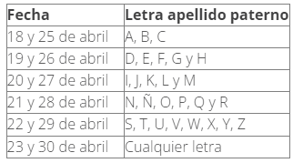 Las personas podrán registrarse de acuerdo al siguiente calendario: