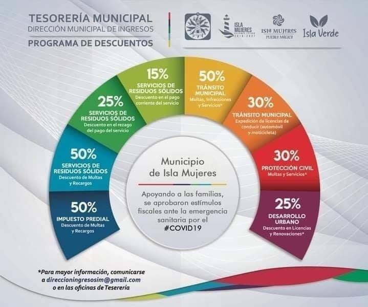 Isla Mujeres, Q. Roo, Martes 17 de Noviembre del 2020, poderycrítica.- Descuento de hasta el 50 por ciento para multas y recargos del Impuesto Predial, ofrece el Ayuntamiento de Isla Mujeres que encabeza Juan Carrillo Soberanis en apoyo a la economía familiar, y estará vigente hasta el 30 de noviembre próximo, por lo que se hace extensa la invitación a la población a aprovechar dichas rebajas.