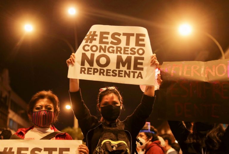 Así se desprende de la primera encuesta publicada sobre la gravísima crisis política y social que dejó dos muertos, decenas de heridos, casos de desaparecidos y la sucesión de dos presidentes en menos de una semana, realizada por el Instituto de Estudios Peruanos y difundida por el diario La República.