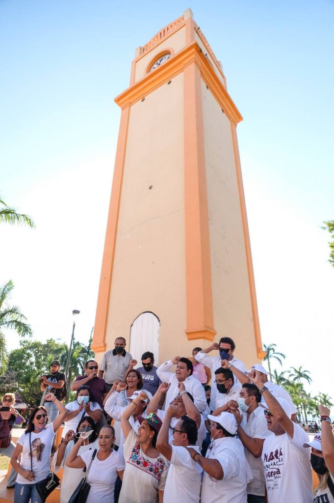 Posteriormente, al continuar sus actividades, la abanderada de la coalición “Juntos Hacemos Historia” realizó una caminata por el parque Benito Juárez, donde se encuentra el centenario reloj municipal. Ahí saludó a locatarios de los alrededores y de Plaza del Sol, a quienes dijo que hoy se tiene la oportunidad de que la Cuarta Transformación lleve bienestar a cada rincón, a cada pueblo.
