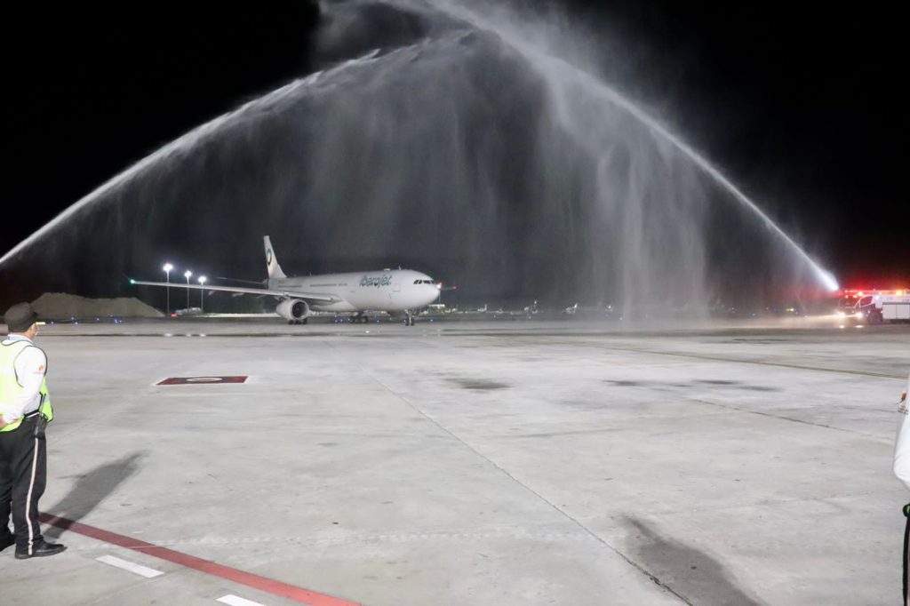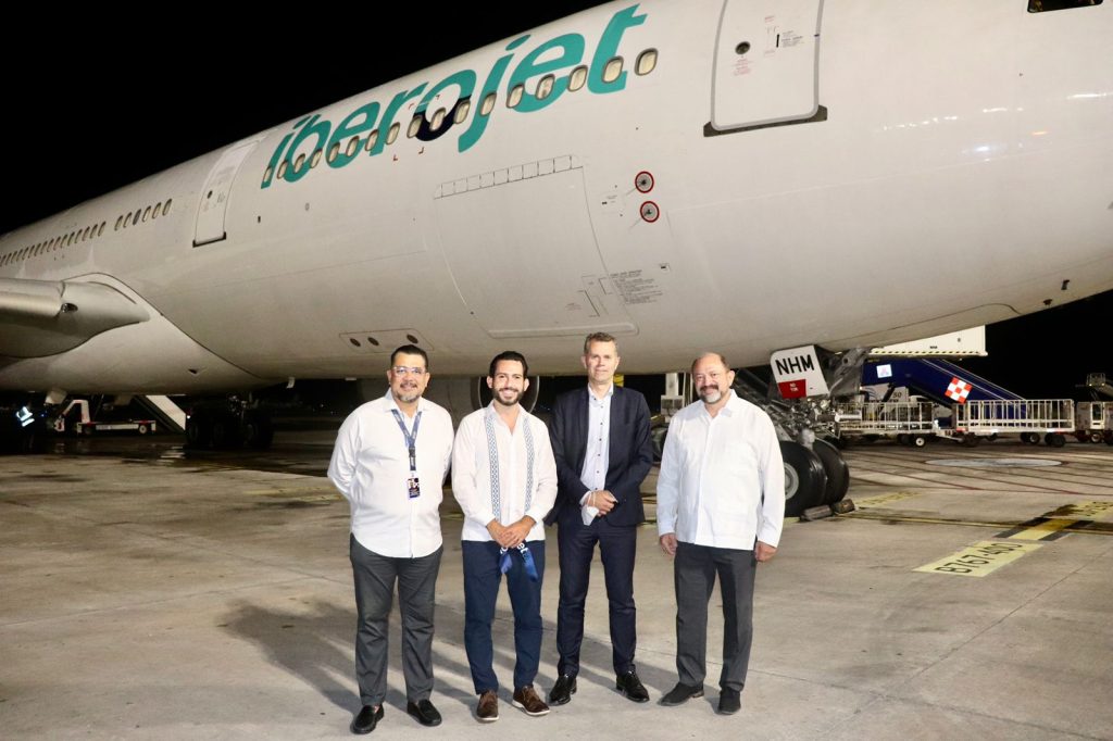 El vuelo aterrizó el domingo 26 de junio a las 22:14 horas en el Aeropuerto Internacional de Cancún, donde fue recibido con un arco de agua y corte de listón como parte de la ceremonia de inauguración donde se contó con la presencia del Secretario de Turismo de Quintana Roo, Bernardo Cueto Riestra; el Director General del CPTQ, Darío Flota Ocampo; Paul Verhagen, subdirector de Iberojet y Alejandro Rosel, Gerente de Relaciones Institucionales de ASUR.