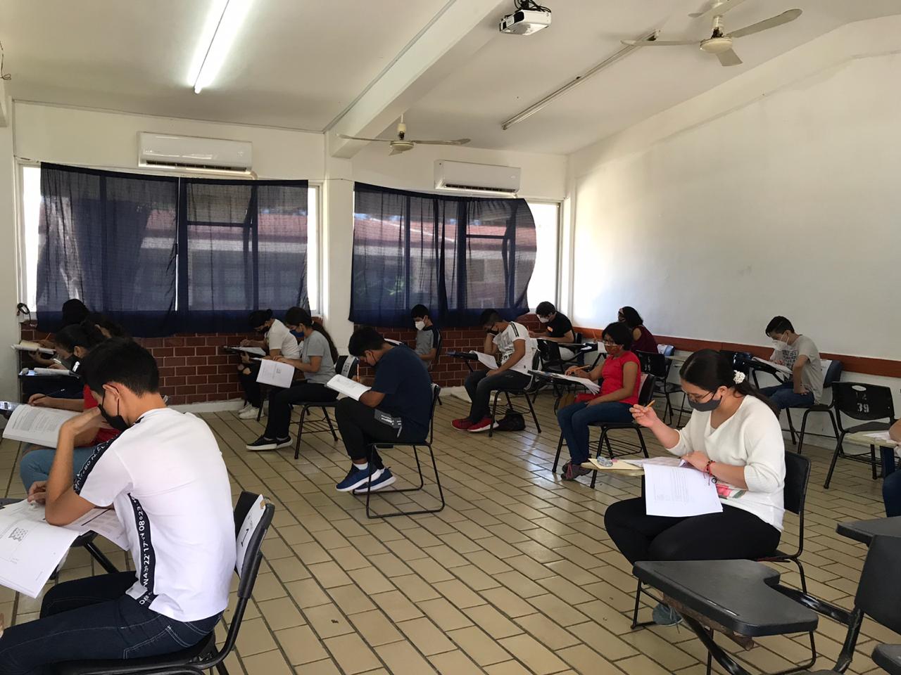 Durante una hora y teniendo nueve alumnos por salón en apego a los protocolos sanitarios que establece el Semáforo Estatal de Riesgo Epidemiológico, en color amarillo.
