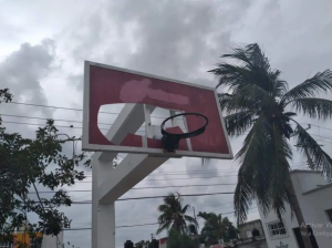Durante un recorrido se pudo verificar que la caseta telefónica está tirada, alambrado roto, juegos rotos, pintura en mal estado, el parque totalmente sucio e incluso los tableros de la cancha de basquetbol rotos.