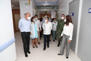 Participaron en este recorrido el general de brigada José Luis Vázquez Araiza, comandante de la 34 Zona Militar; el coordinador nacional de Infraestructura Hospitalaria del INSABI Carlos Sánchez Meneses; el coordinador de Abastecimiento y Distribución de Medicamentos del INSABI Alejandro Calderón Alipi; el coordinador nacional de Programas de Administración y Finanzas del INSABI Víctor Lamoyi Bocanegra; Guillermo Canul Cruz, director de Infraestructura de Salud de la SESA, entre otras autoridades.