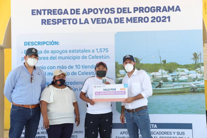 En gira de trabajo por ese punto de la costa yucateca, Vila Dosal realizó, junto al titular de la Secretaría de Pesca y Acuacultura Sustentables (Sepasy), Rafael Combaluzier Medina, la distribución de esta ayuda por 1,200 pesos en vales, correspondiente a la segunda de un total de 4 entregas que recibirán los beneficiarios entre el 1 febrero y el 31 de marzo, en beneficio de Mariana y otros más de 1,500 pescadores de este puerto. También se entregaron las credenciales de registro del padrón de beneficiarios de este programa.