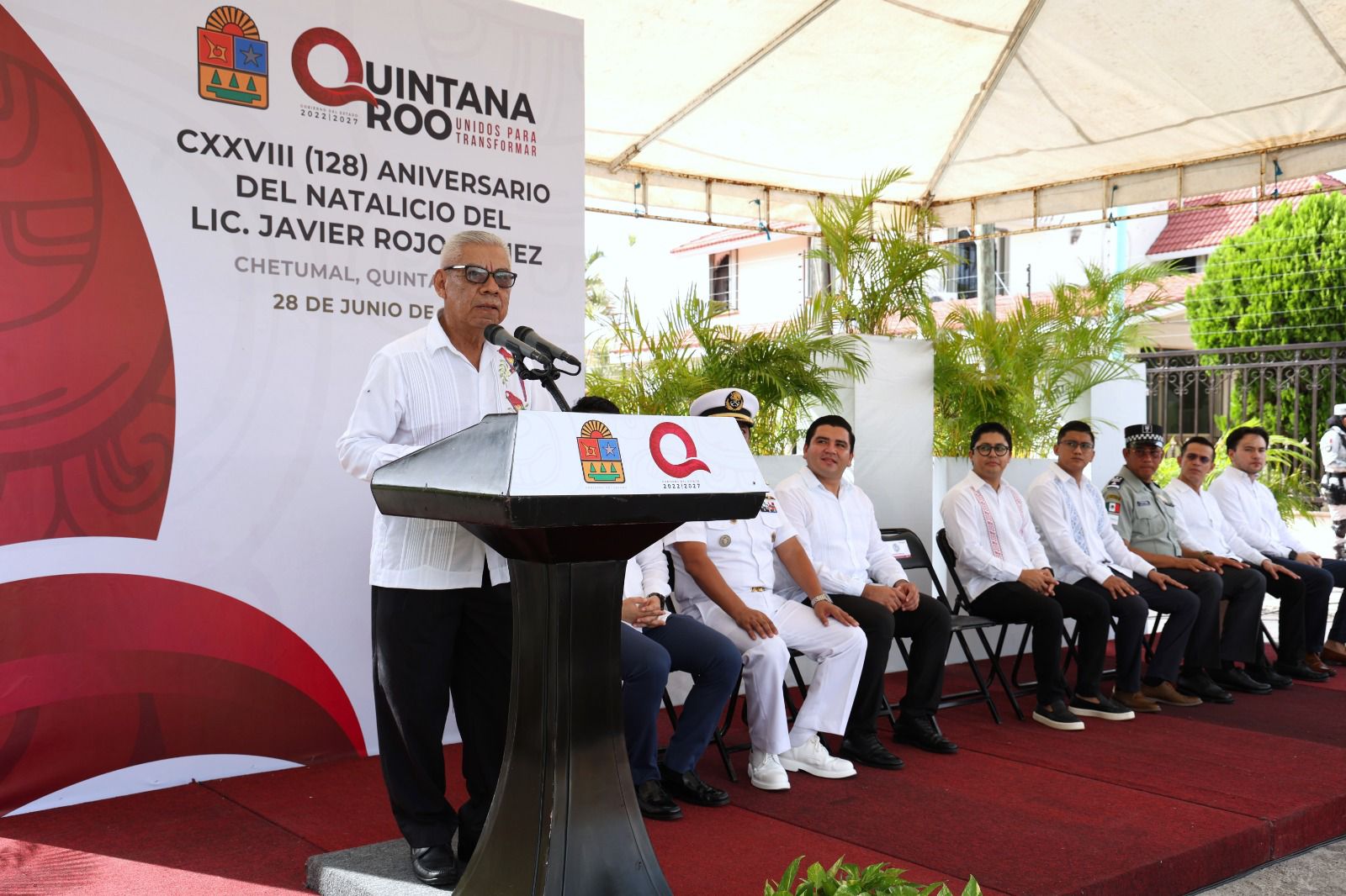 A través de la Secretaría de Finanzas y Planeación (SEFIPLAN) se conmemoró en Chetumal el 128 aniversario del natalicio del licenciado Javier Rojo Gómez, con una ceremonia cívica realizada al pie de su monumento, erigido en las confluencias de las avenidas Efraín Aguilar con Armada de México.