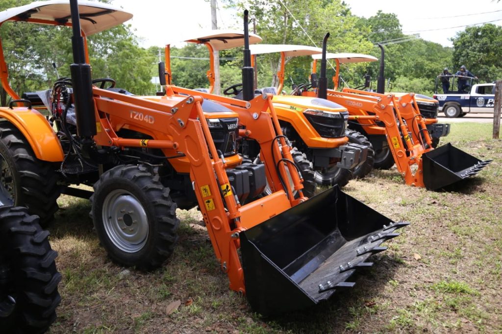 Asimismo, en las instalaciones de la Asociación Ganadera Local se entregaron 5 tractores ligeros con sus implementos; 65 láminas de zinc; apoyos para el pago de las perforaciones del pozo ganadero, apoyo equipo económicos a 8 ganaderos para compra de sementales bovinos y equipamiento para las instalaciones.