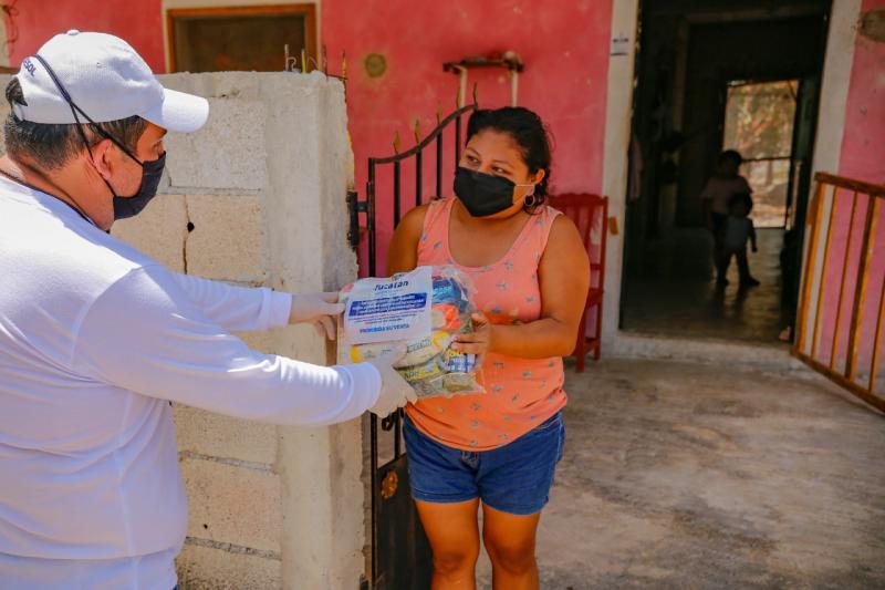 Yucatán, 05 mayo; poderycritica.-Por segunda ocasión, María May May recibió, a las puertas de su domicilio, el apoyo alimentario que distribuye el Gobierno del Estado y que la ha ayudado a brindar comida a sus dos hijos pequeños, después de que se quedó sin ingresos a causa de la contingencia por el Coronavirus.
