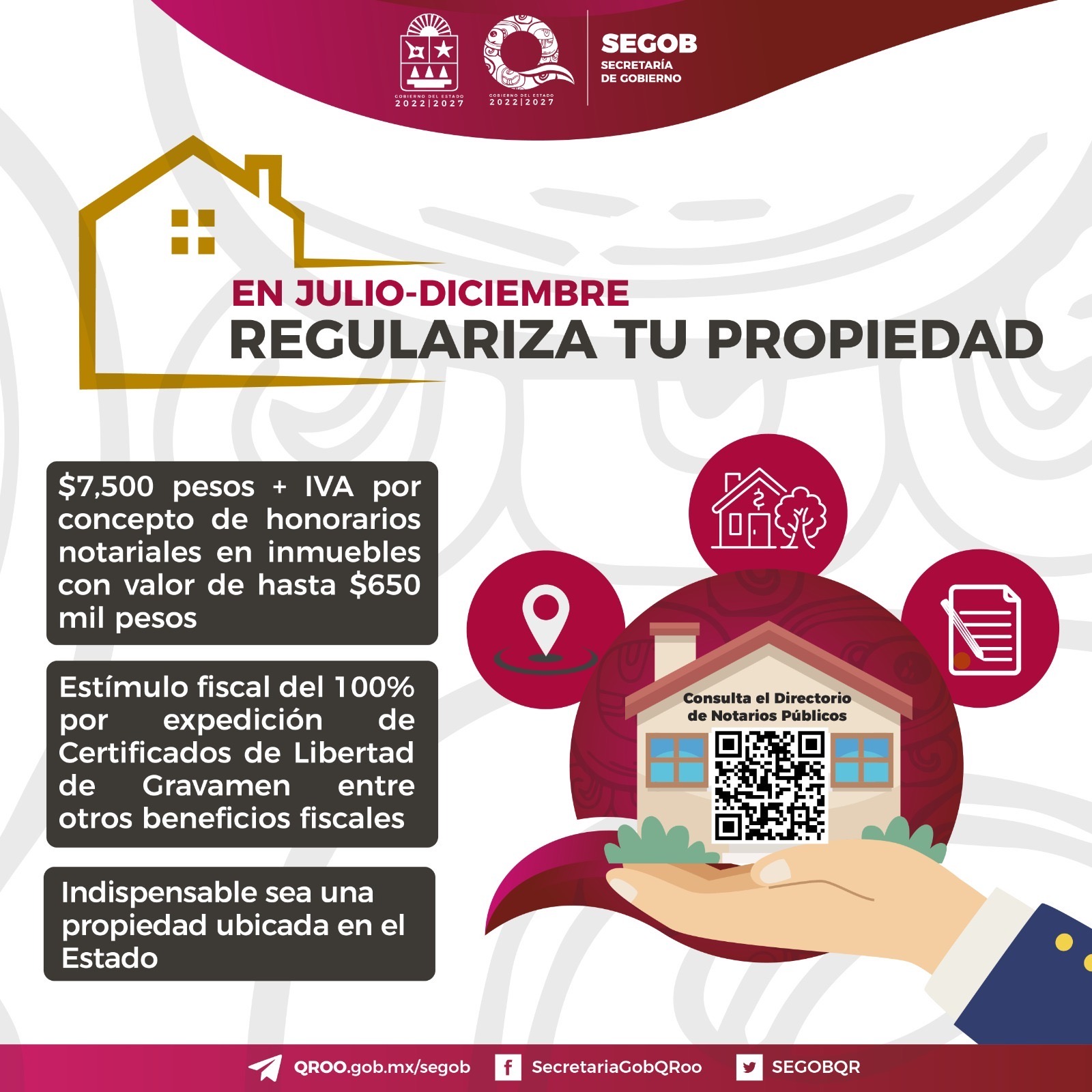 “En Julio-Diciembre Regulariza tu Propiedad” también considera una serie de estímulos fiscales que pueden ser consultados, además de los requisitos, en la edición del tres de enero de este año del Periódico Oficial del Estado de Quintana Roo.