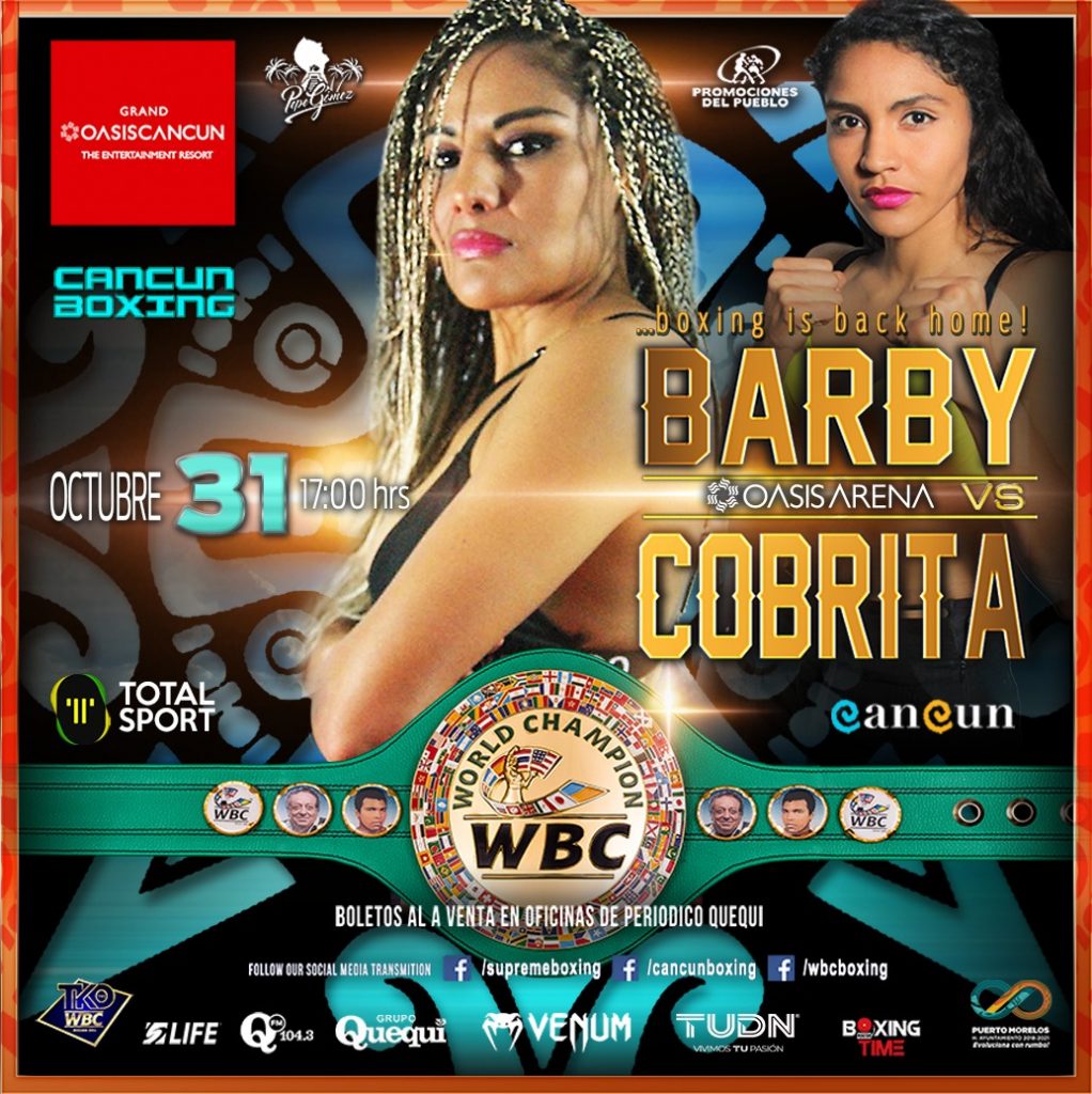 Con récord profesional de 54-9-4, 18 por la vía del nocaut, la “Barby” va este sábado por una defensa más del cetro verde y oro en una velada que será importante para México y para las promotoras “Cancun Boxing”, “Promociones del Pueblo” y “Boxing Time Promotions”, pues será la primera con aficionados desde la pandemia, esto la tiene sumamente satisfecha ya que la gente podrá regresar a la Arena y más porque lo hará con todas las medidas de seguridad.