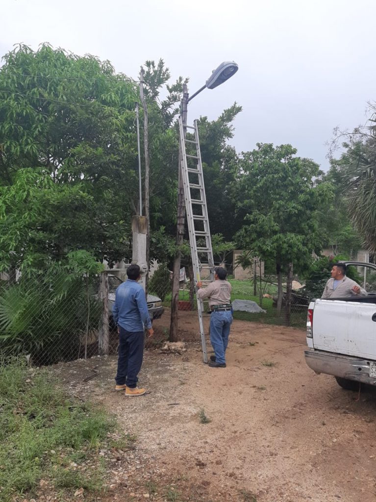 «Hemos trabajado desde hace una semana recorriendo las comunidades, verificando que las luminarias se encuentren en buen estado y cambiando las inservibles por nuevas, ya que contantemente se dañan, el día de mañana concluimos con todo el alumbrado público de todo el municipio.» Mencionó José Antonio Cocom, Director de Servicios Públicos Municipal.